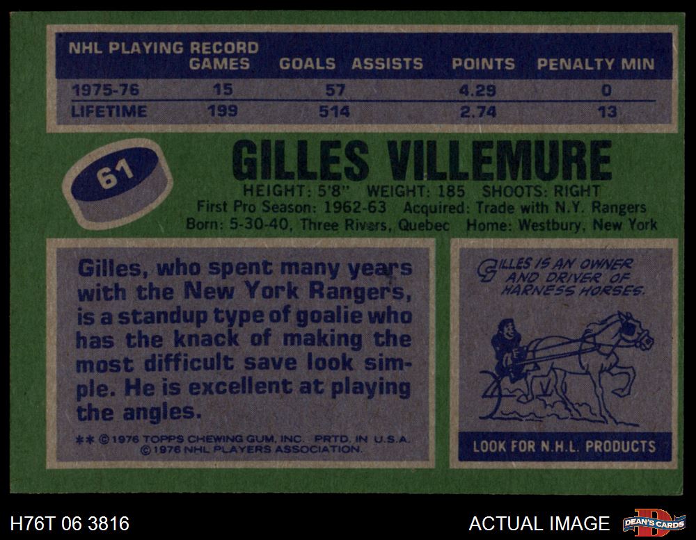 1976 Topps #61 Gilles Villemure 6 - EX/MT
