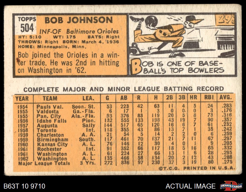 1963 Topps #504 Bob Johnson 2 - GOOD