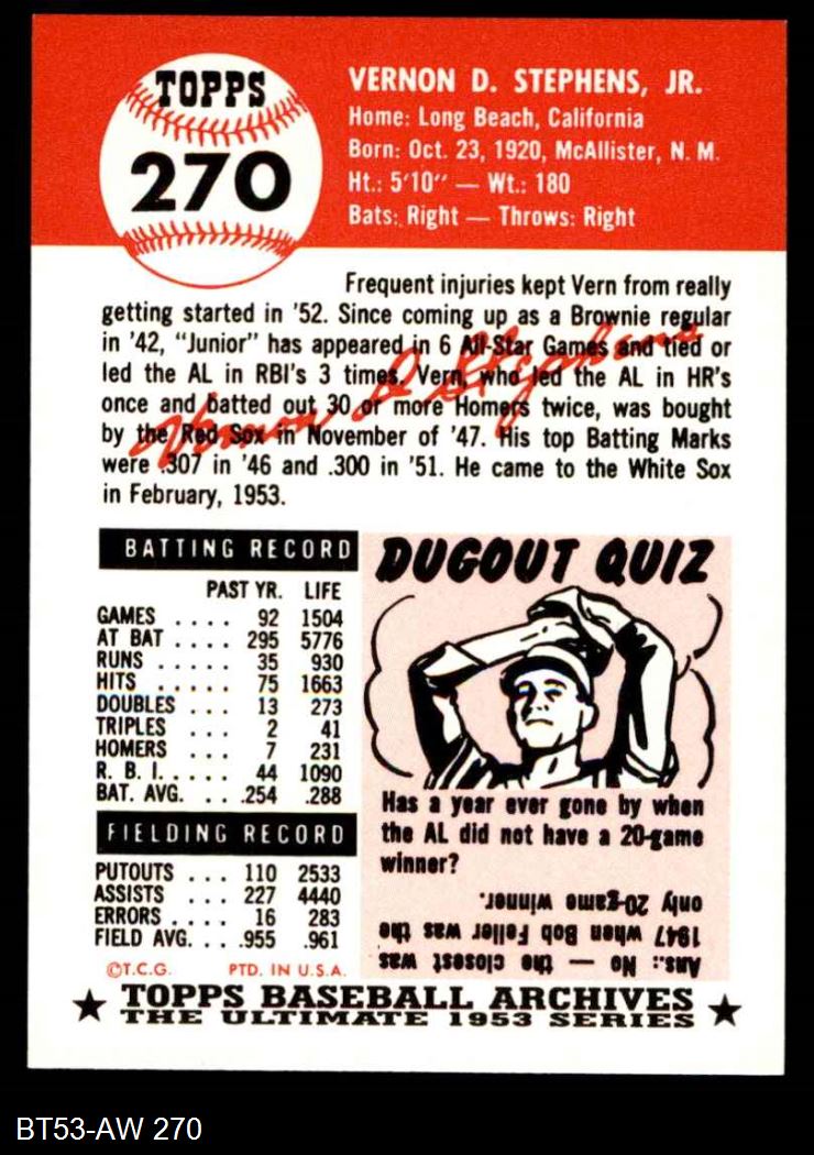 1953 Topps Archives #270 Vern Stephens 8 - NM/MT