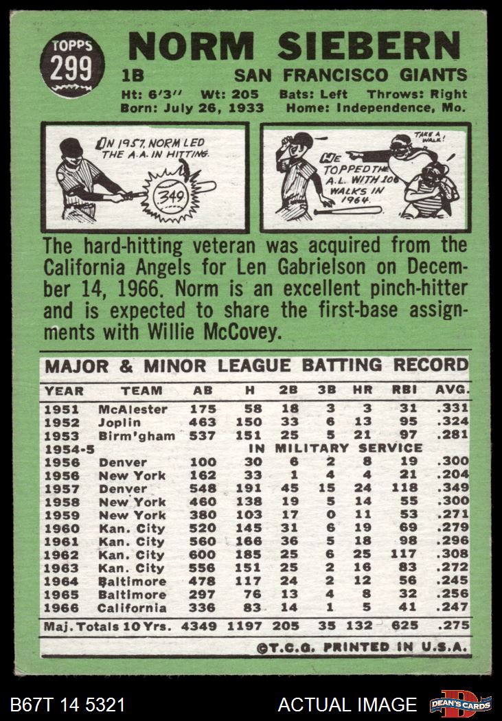 1967 Topps #299 Norm Siebern 4 - VG/EX