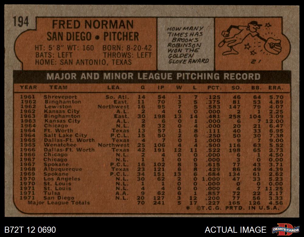 1972 Topps #194 Fred Norman 4 - VG/EX