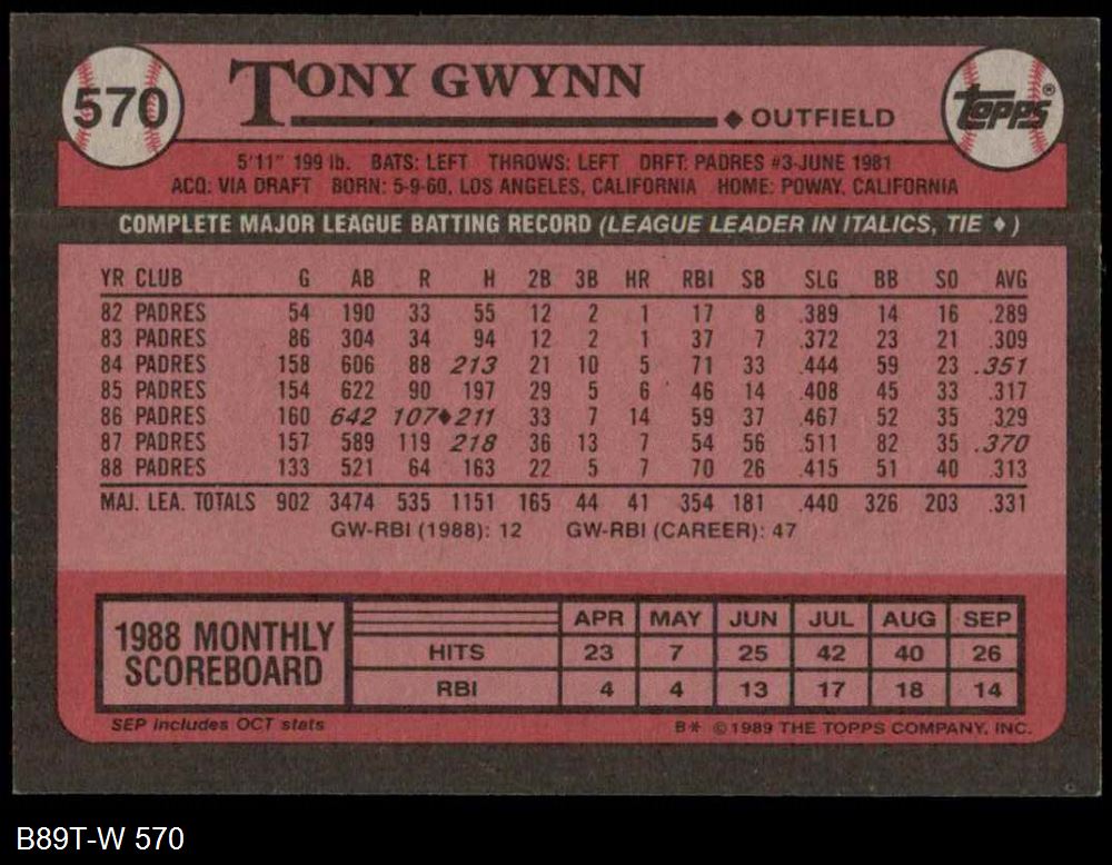 1989 Topps #570 Tony Gwynn