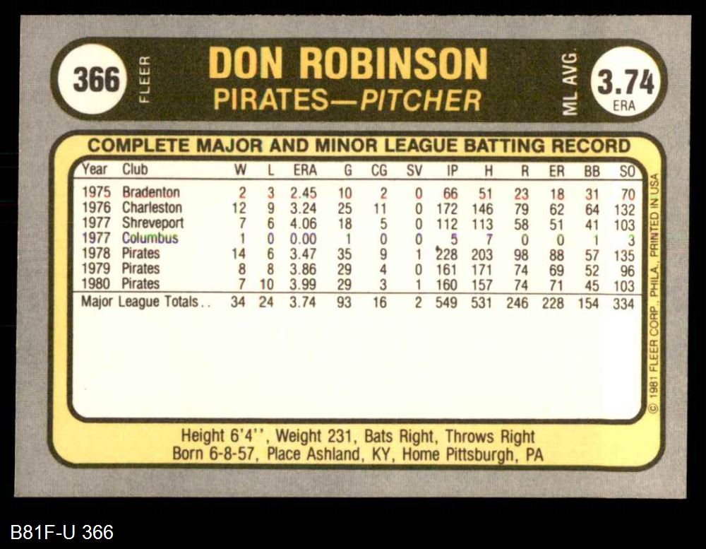1981 Fleer Baseball Cards (4,690 available)1981 Fleer Pirates (94 available)