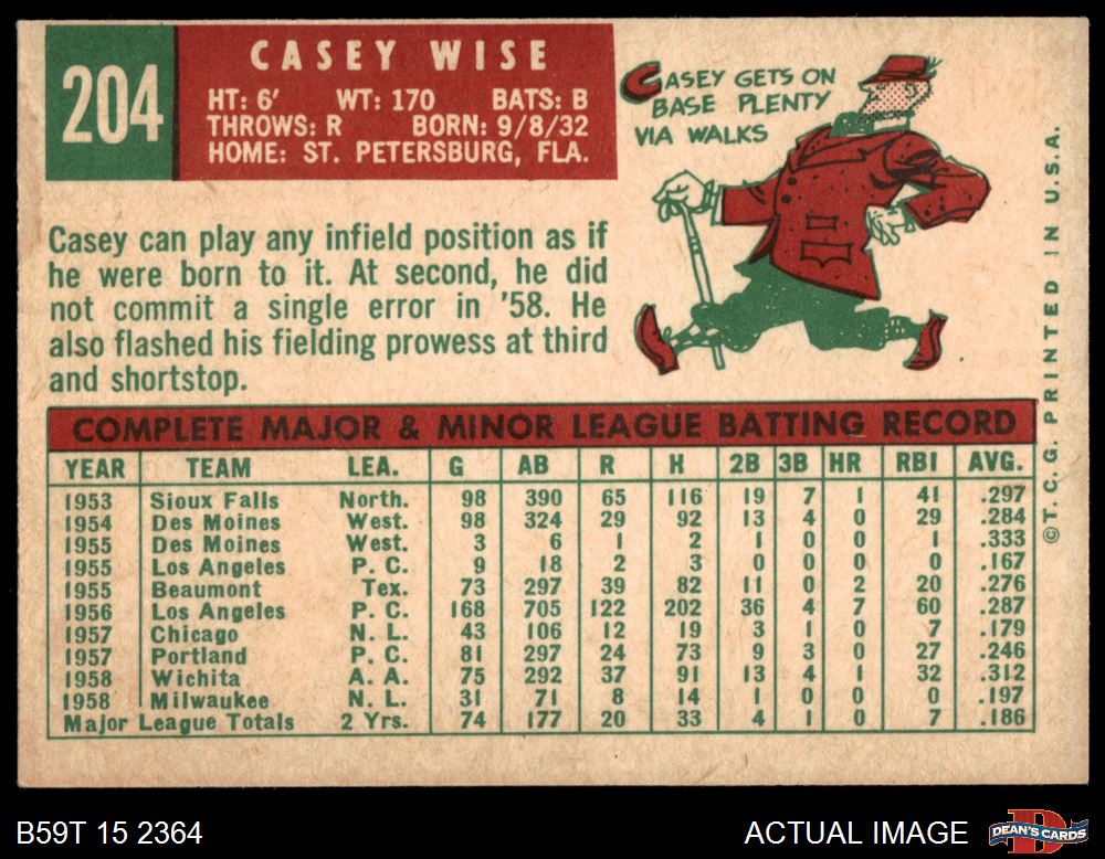 1959 Topps #204 Casey Wise 5 - EX