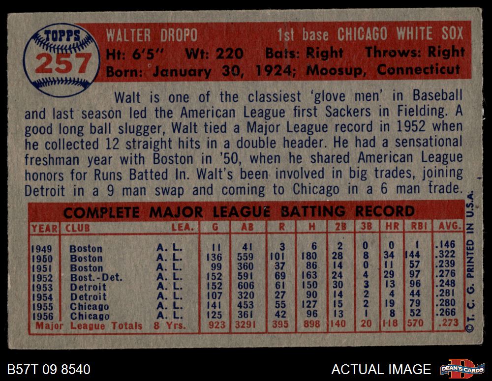 1957 Topps #257 Walt Dropo 4 - VG/EX