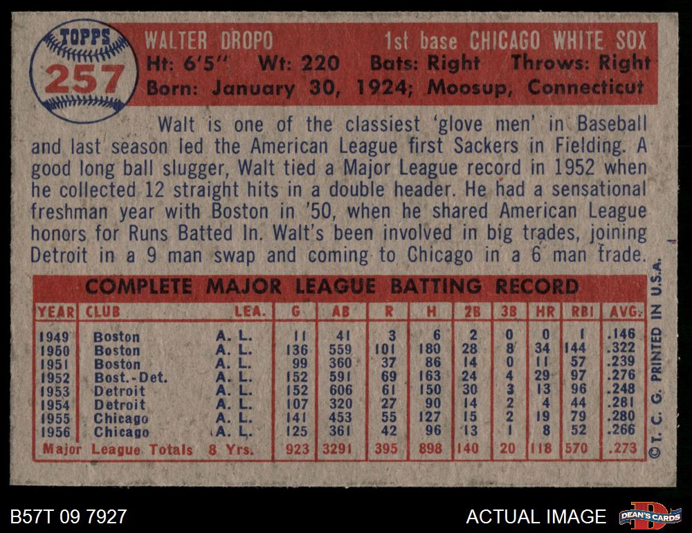 1957 Topps #257 Walt Dropo 7 - NM