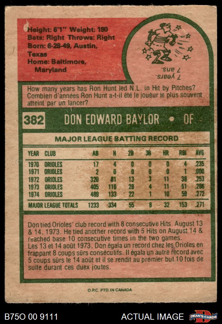 1975 O-Pee-Chee #382 Don Baylor 2 - GOOD