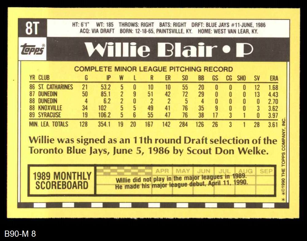 1990 Topps Traded #8 T Willie Blair 8 - NM/MT