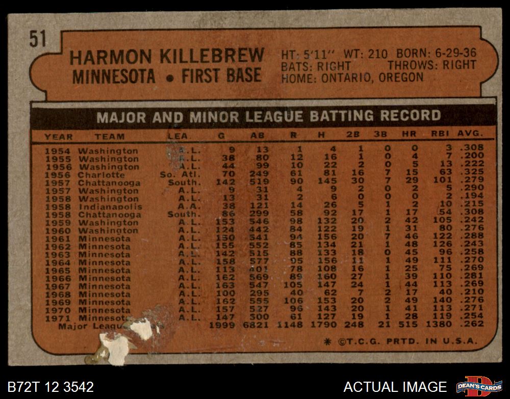 1972 Topps #51 Harmon Killebrew 1.5 - FAIR