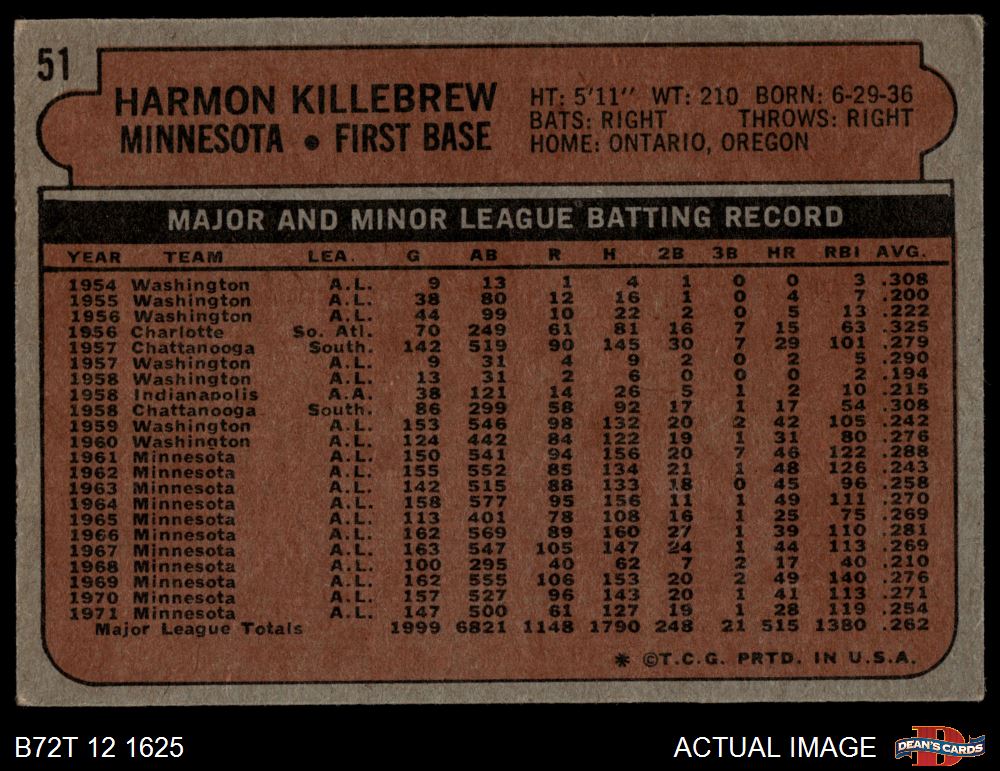 1972 Topps #51 Harmon Killebrew 2.5 - GD+
