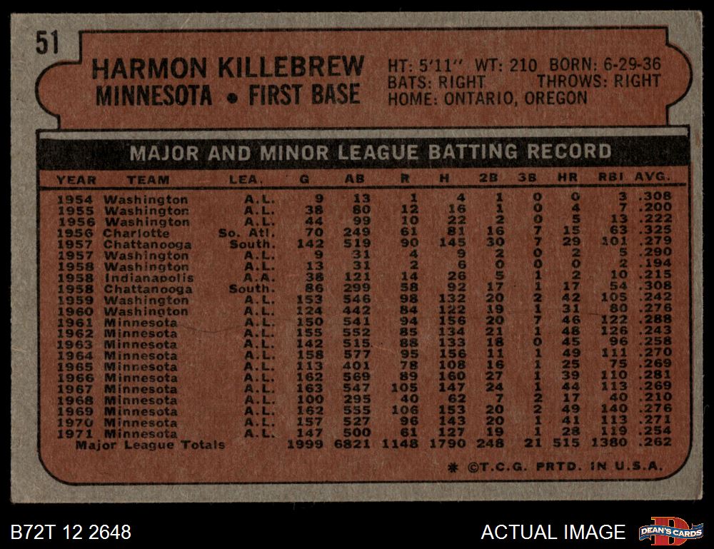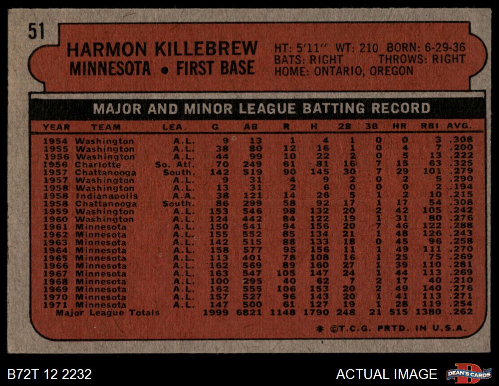 1972 Topps #51 Harmon Killebrew 3 - VG
