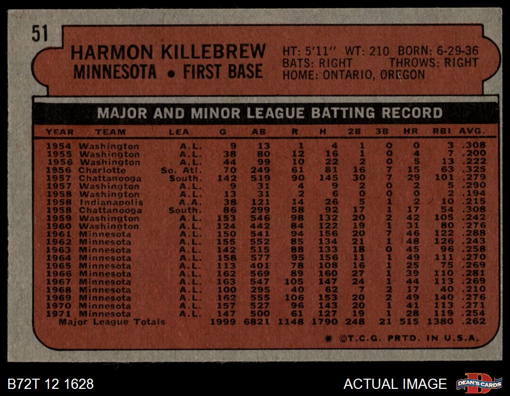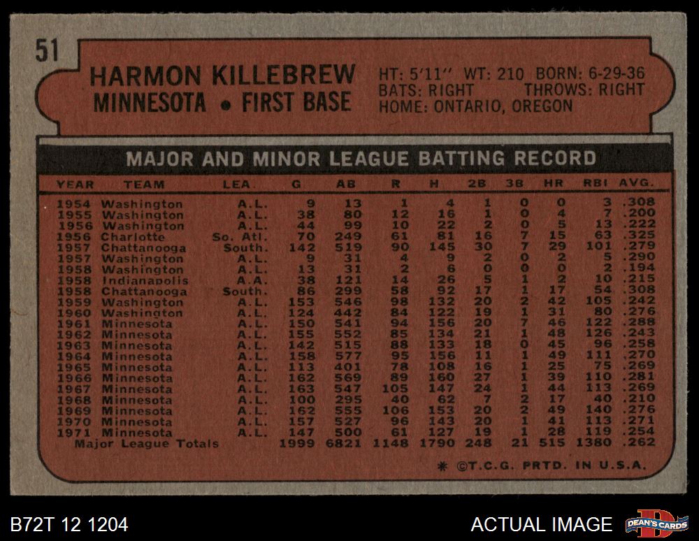 1972 Topps #51 Harmon Killebrew 4 - VG/EX