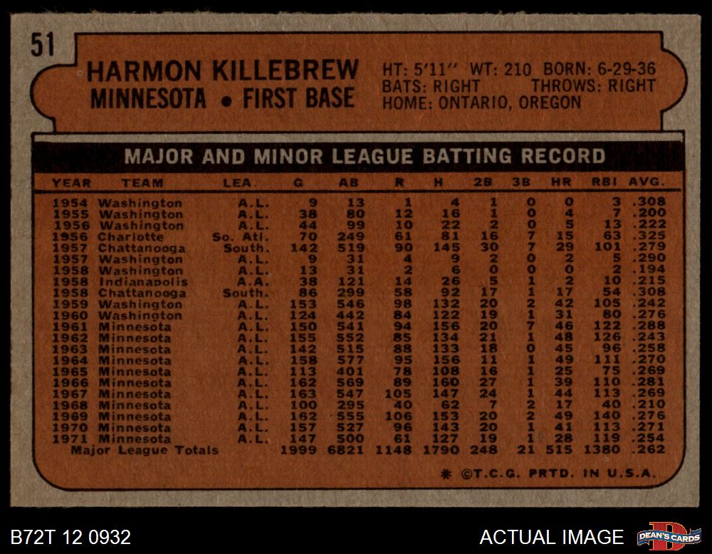 1972 Topps #51 Harmon Killebrew 4.5 - VG/EX+