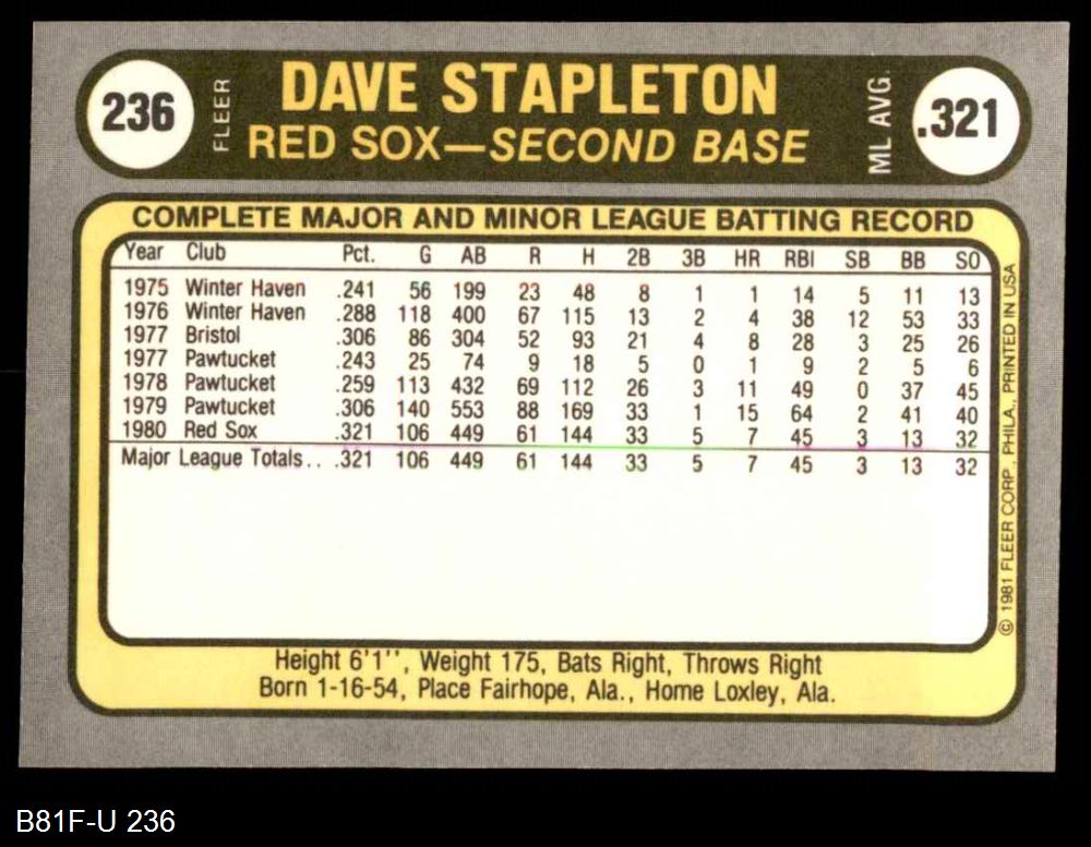 1981 Fleer Baseball Cards (4,688 available)1981 Fleer Red Sox (77 available)