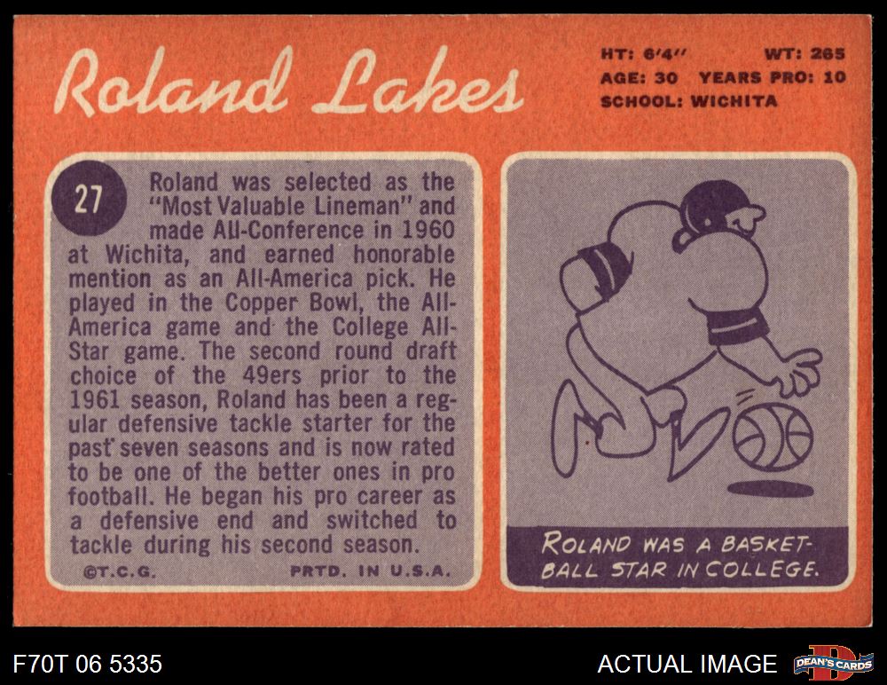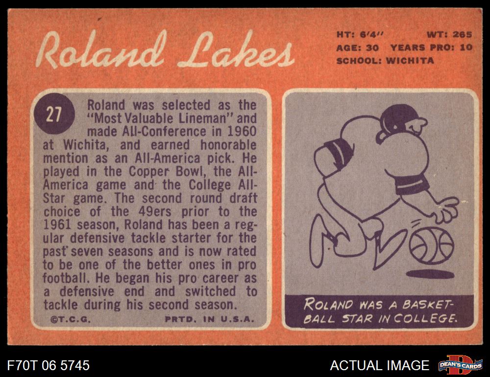 1970 Topps #27 Roland Lakes 5 - EX