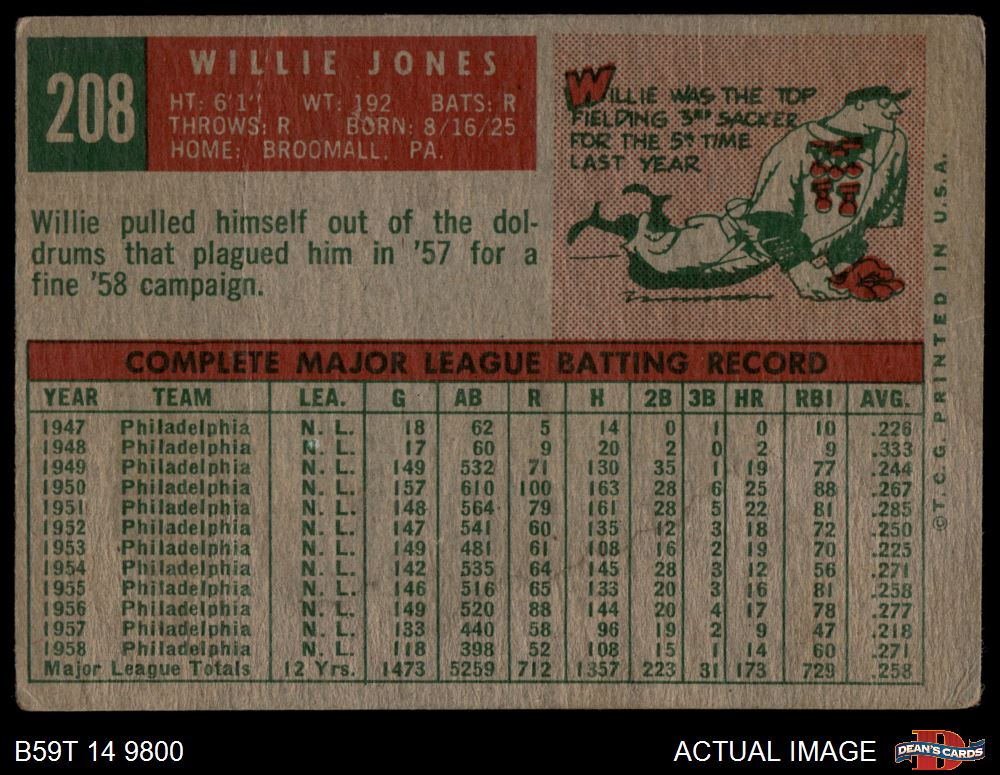 1959 Topps #208 Willie Jones 1.5 - FAIR