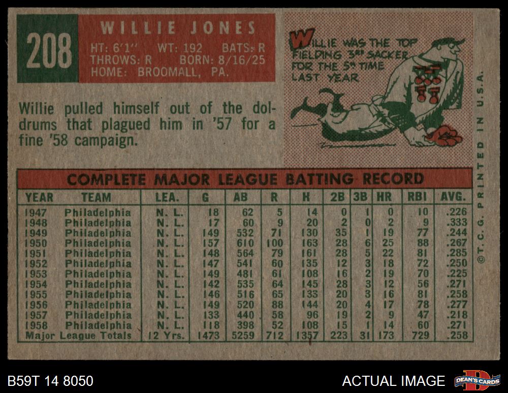 1959 Topps #208 Willie Jones 4 - VG/EX