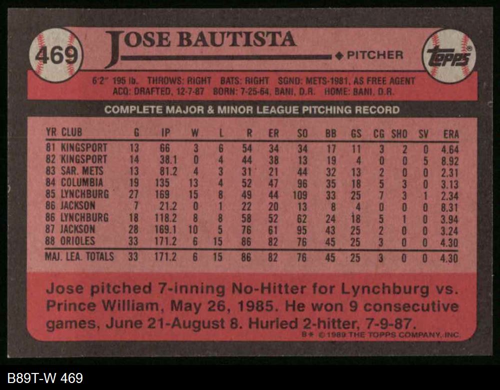 1989 Topps #469 Jose Bautista