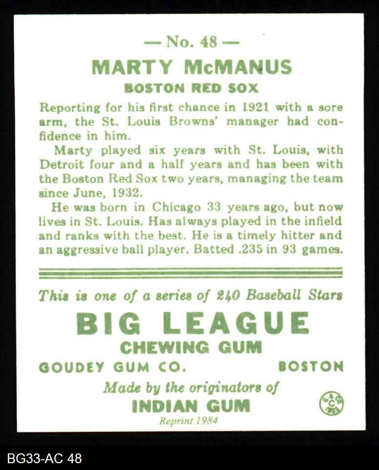1933 Goudey Reprint (1,589 available)1933 Goudey Reprint Red Sox (59 available)
