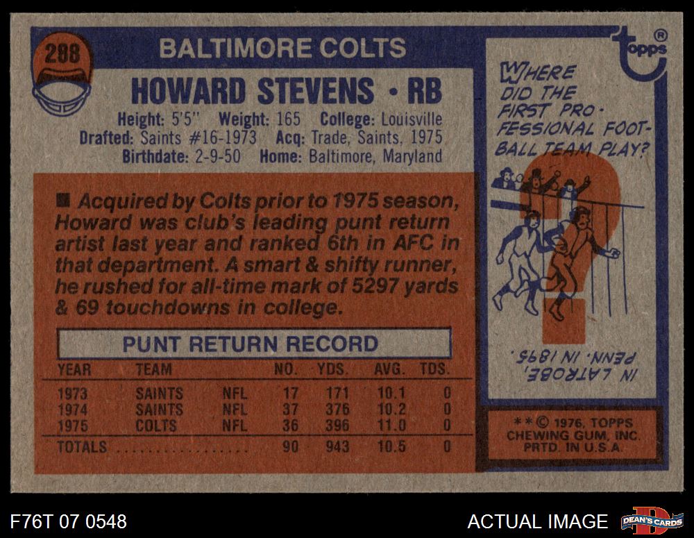 1976 Topps #288 Howard Stevens 7 - NM