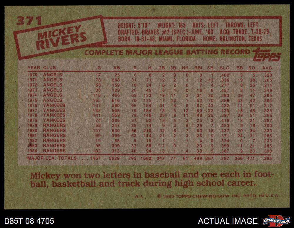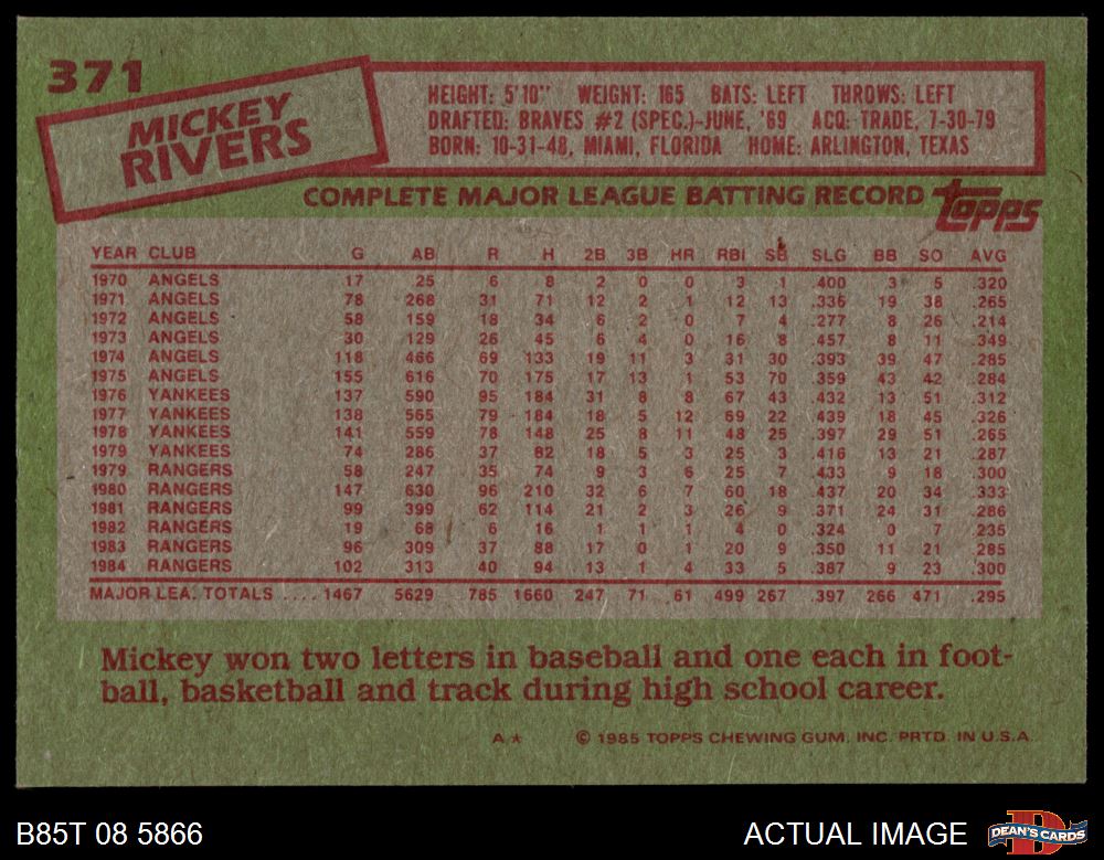1985 Topps #371 Mickey Rivers 7.5 - NM+