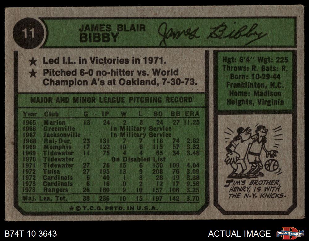 1974 Topps #11 Jim Bibby 1.5 - FAIR