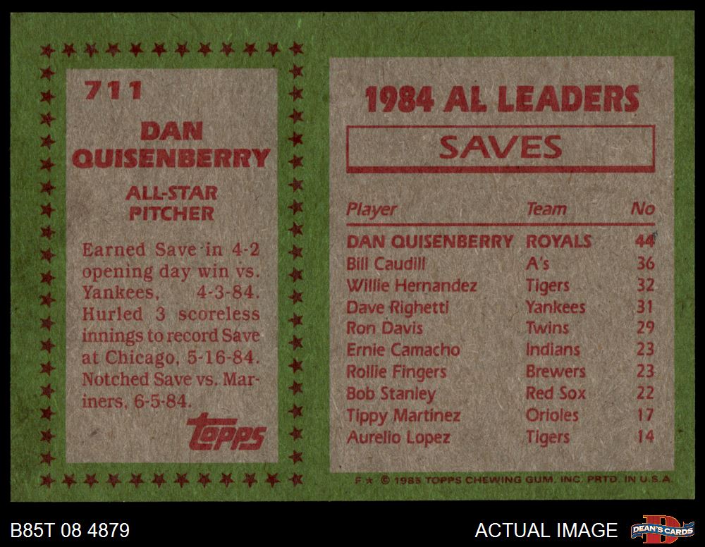 1985 Topps #711 - Dan Quisenberry All-Star 7 - NM