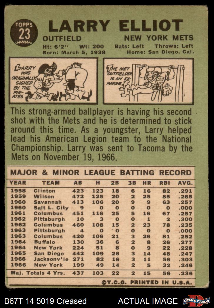 1967 Topps #23 Larry Elliot 2 - GOOD