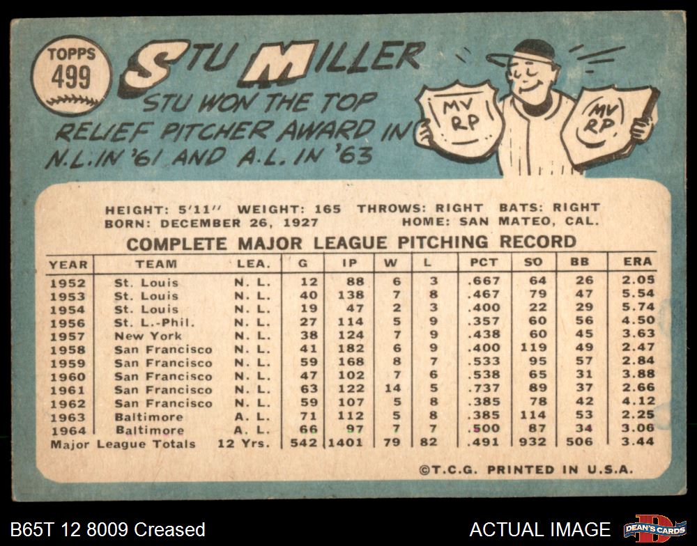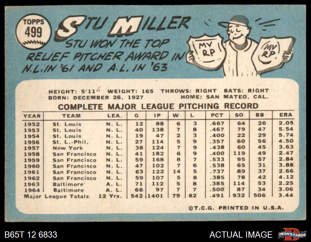 1965 Topps #499 Stu Miller