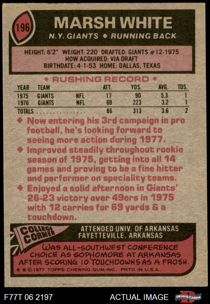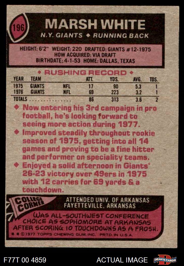 1977 Topps #196 Marsh White