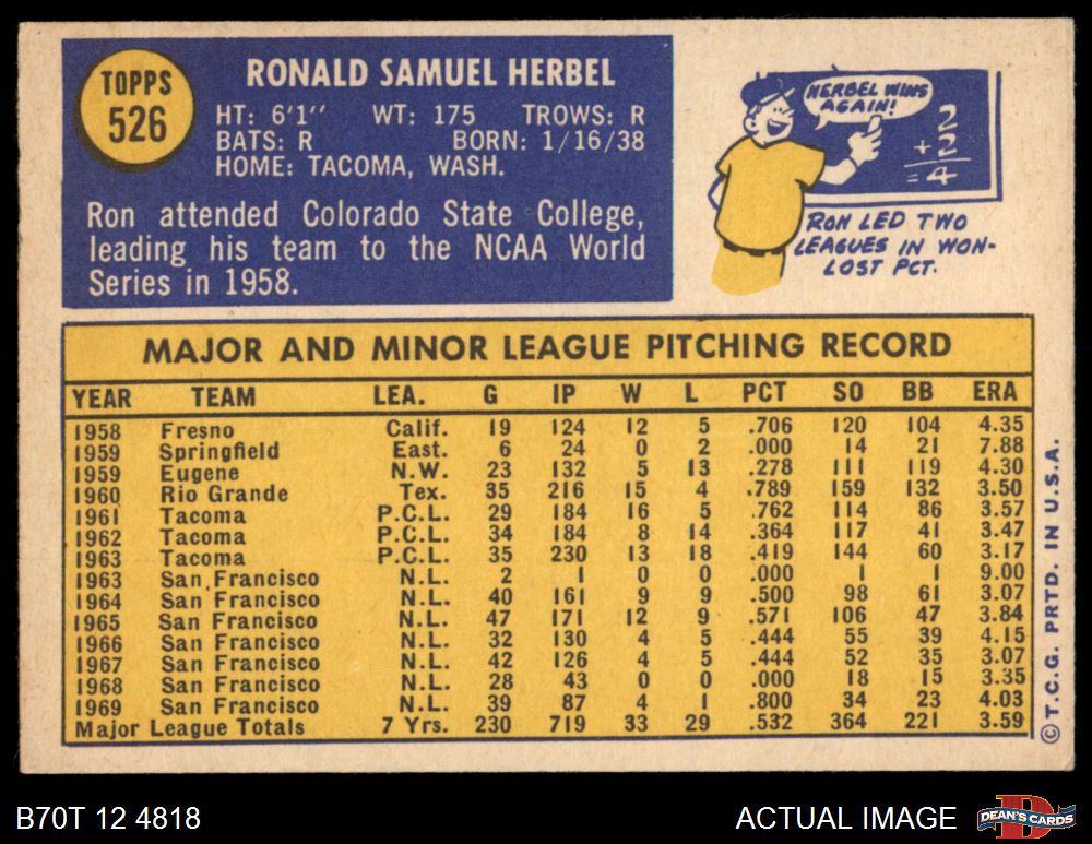 1970 Topps #526 Ron Herbel 6 - EX/MT