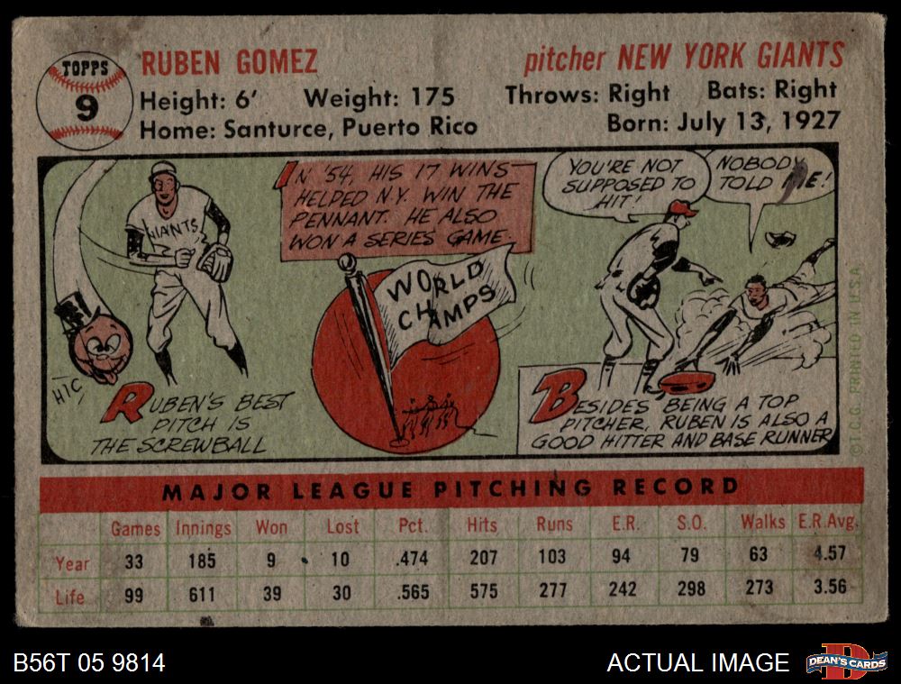 1956 Topps #9 Ruben Gomez 2 - GOOD