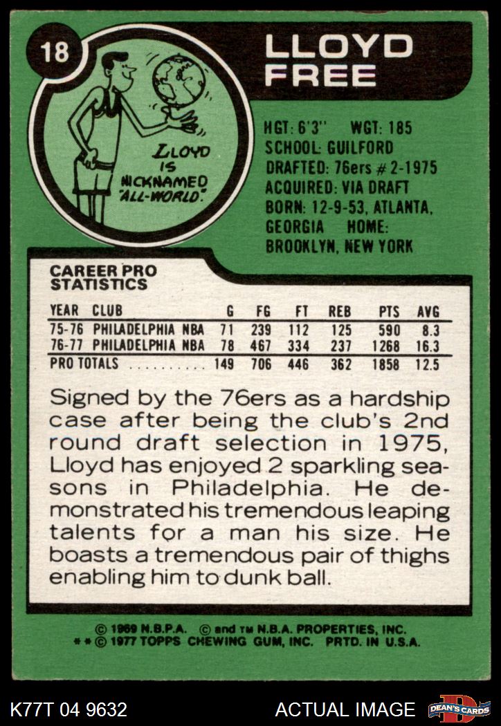 1977 Topps #18 Lloyd Free 5 - EX