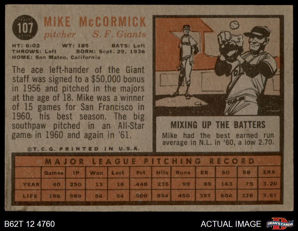 1962 Topps #107 Mike McCormick 5.5 - EX+