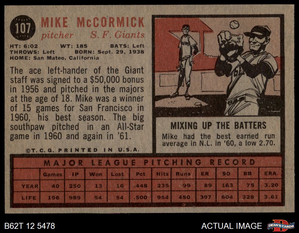 1962 Topps #107 Mike McCormick 6.5 - EX/MT+