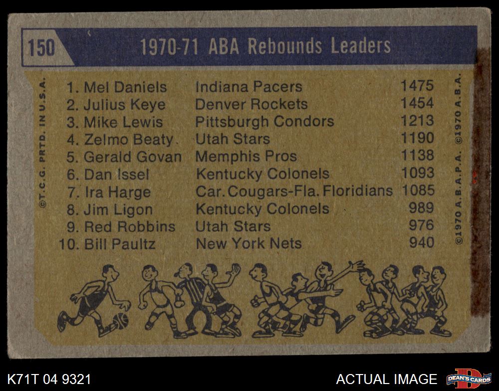 1971 Topps #150 - Mel Daniels / Mike Lewis / Julius Keye ABA Rebounds Leaders 1 - POOR