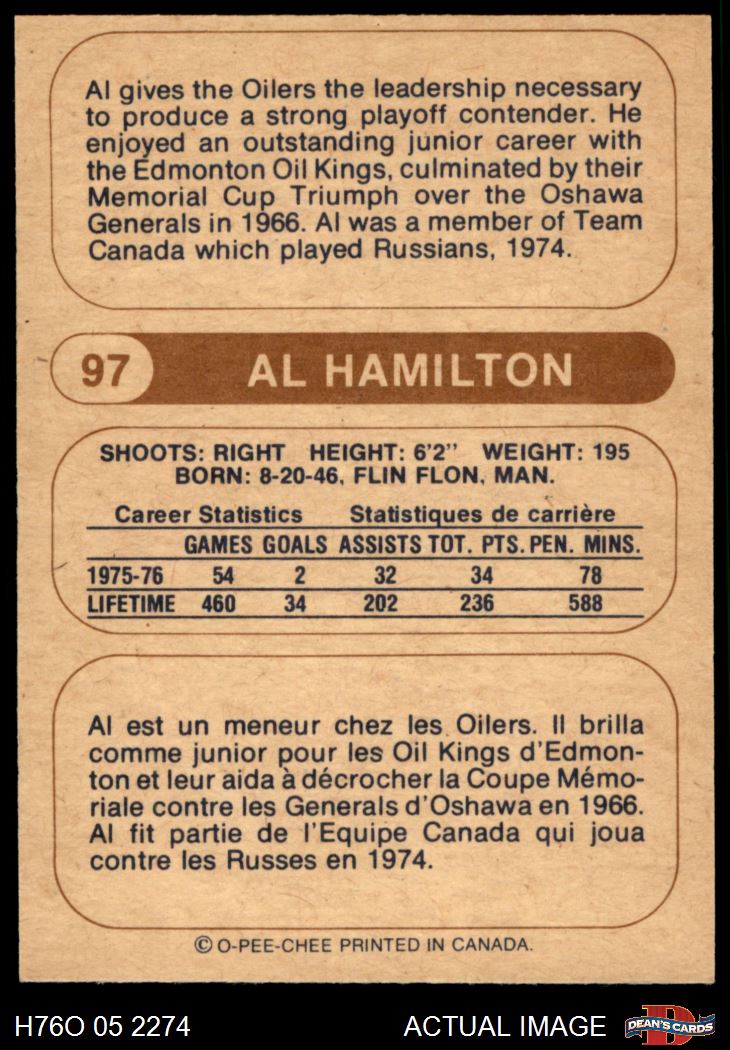 1976 O-Pee-Chee WHA #97 Al Hamilton 6 - EX/MT