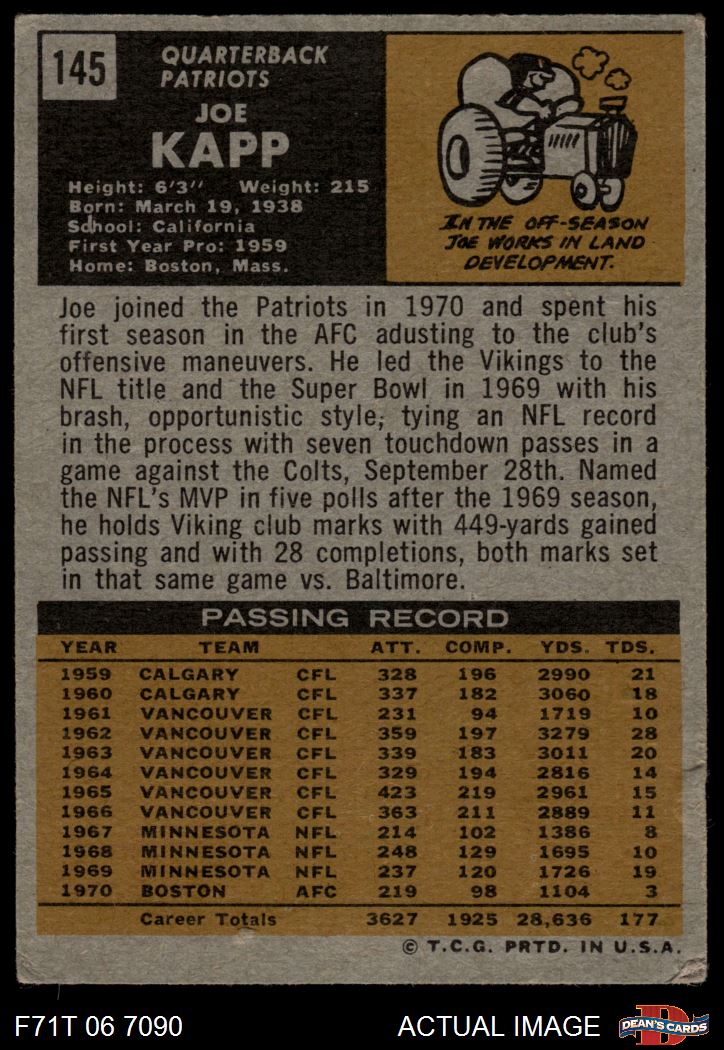 1971 Topps #145 Joe Kapp 1.5 - FAIR