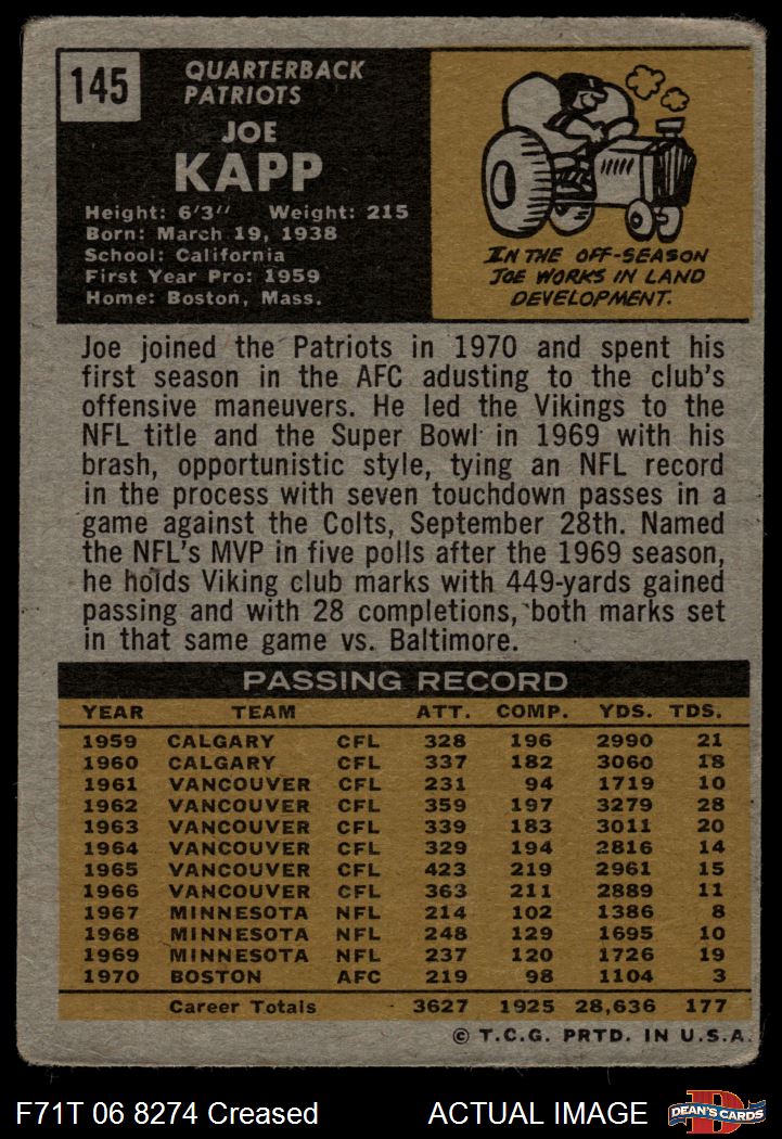 1971 Topps #145 Joe Kapp Front Thumbnail