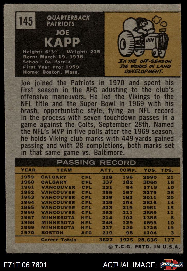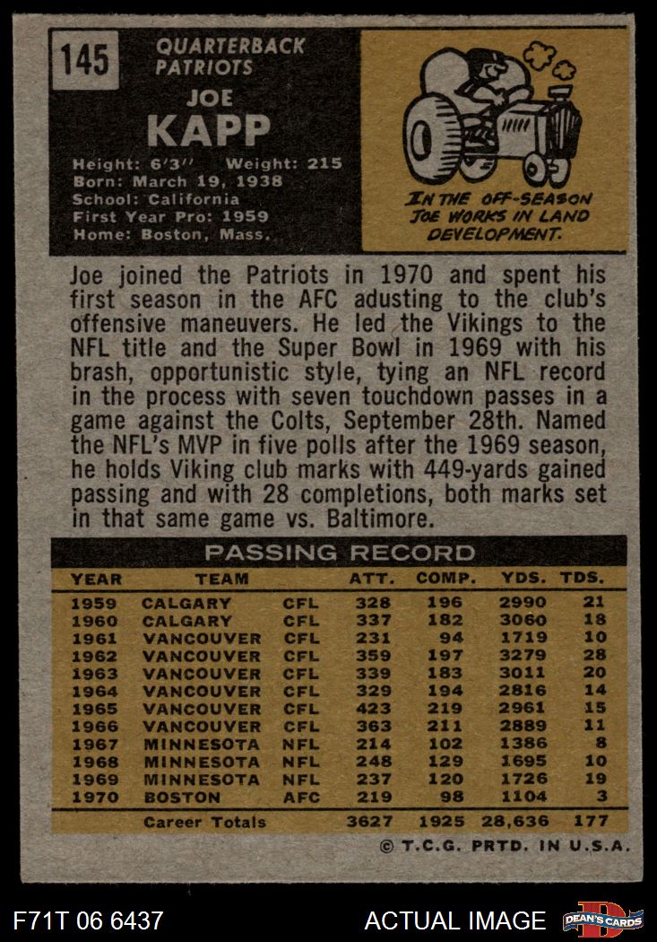 1971 Topps #145 Joe Kapp 4 - VG/EX