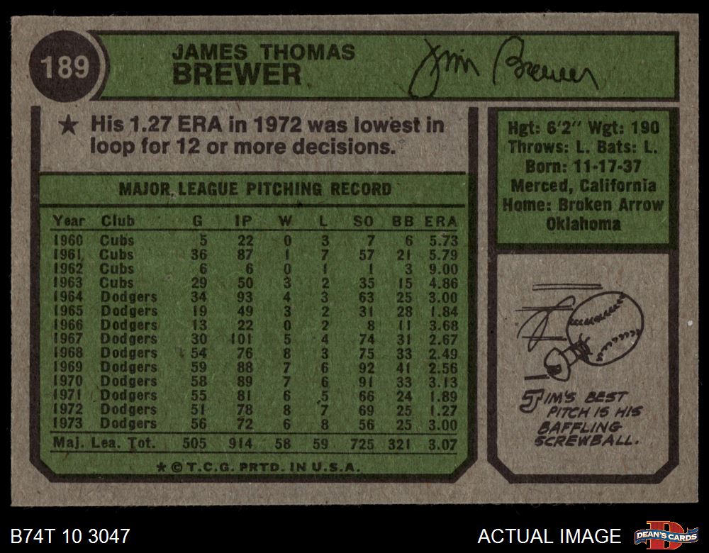 1974 Topps #189 Jim Brewer 4 - VG/EX