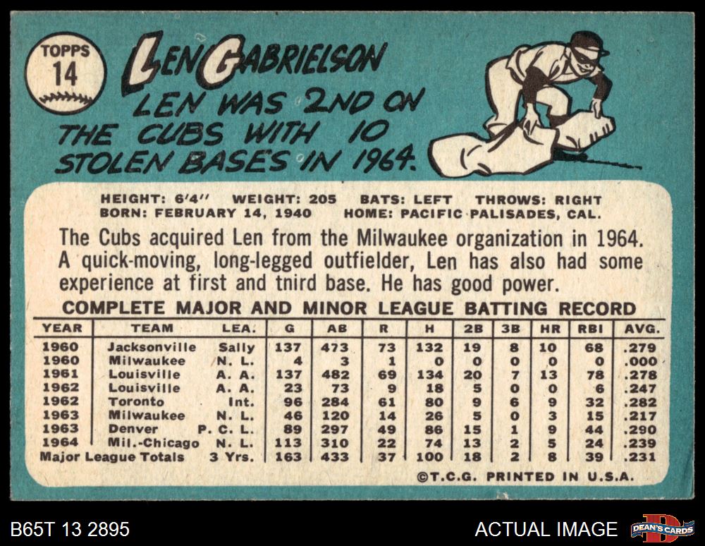 1965 Topps #14 Len Gabrielson