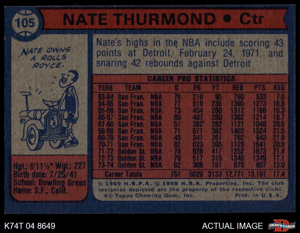 1974 Topps #105 Nate Thurmond 5 - EX