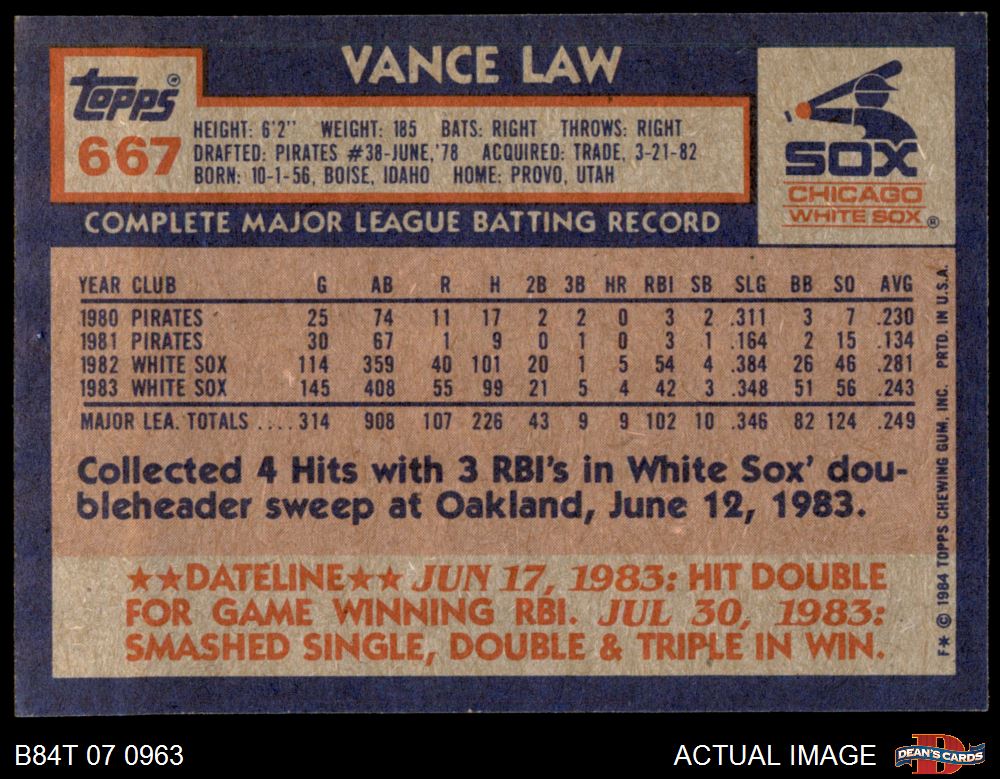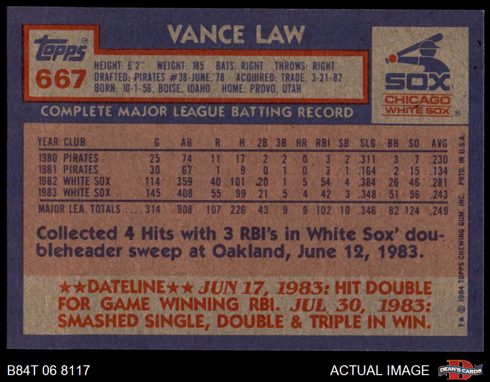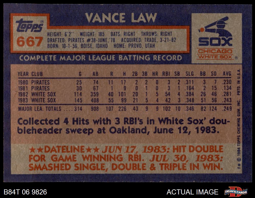 1984 Topps #667 Vance Law