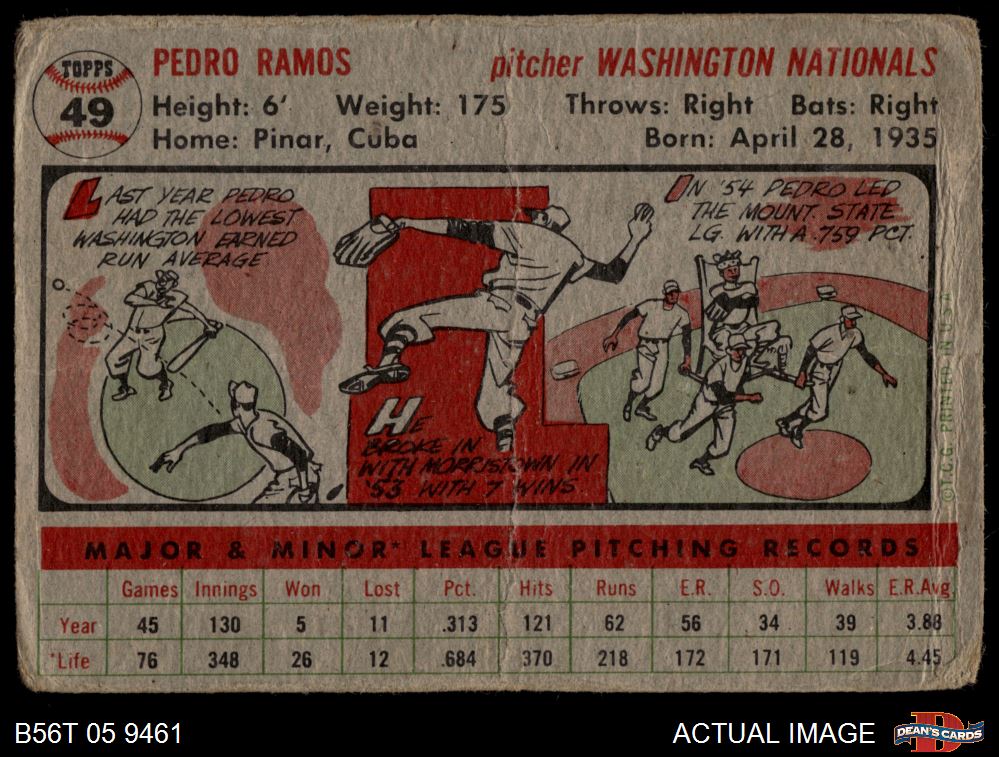 1956 Topps #49 Pedro Ramos AUTHENTIC