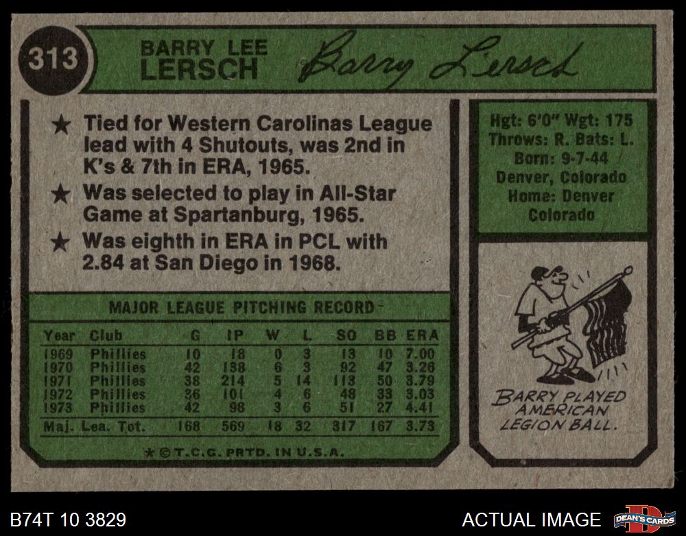 1974 Topps #313 Barry Lersch