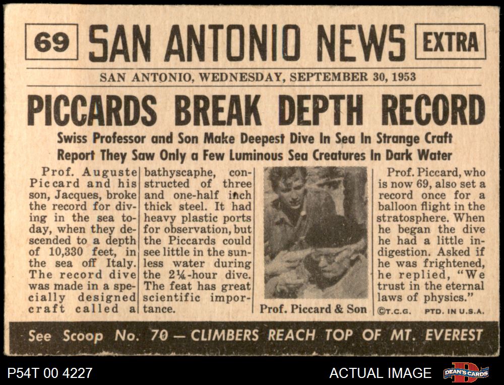 1954 Topps Scoop #69 xCOA Piccard Descends 2 Miles Under 4 - VG/EX