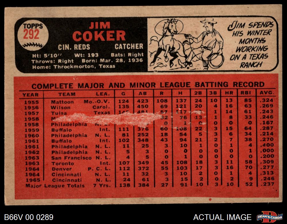 1966 Topps Venezuelan #292 Jim Coker 1.5 - FAIR
