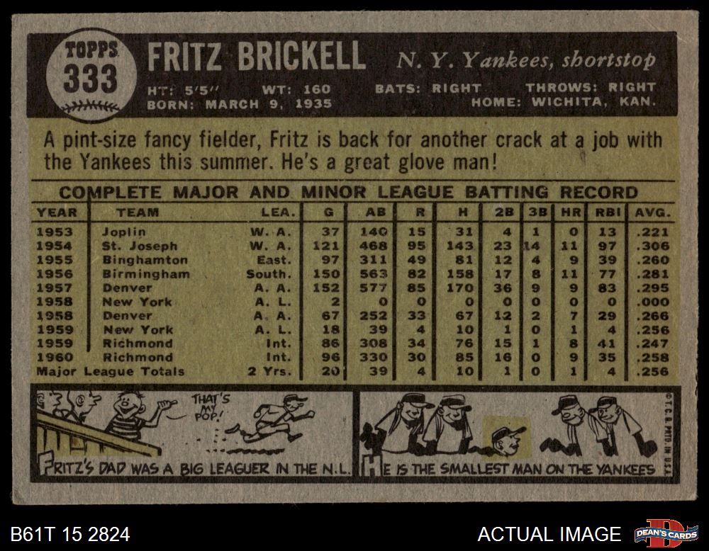 1961 Topps #333 Fritz Brickell