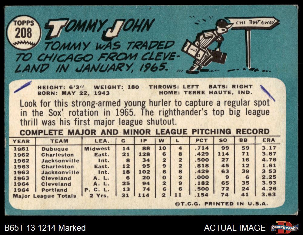 1965 Topps #208 Tommy John 1.5 - FAIR